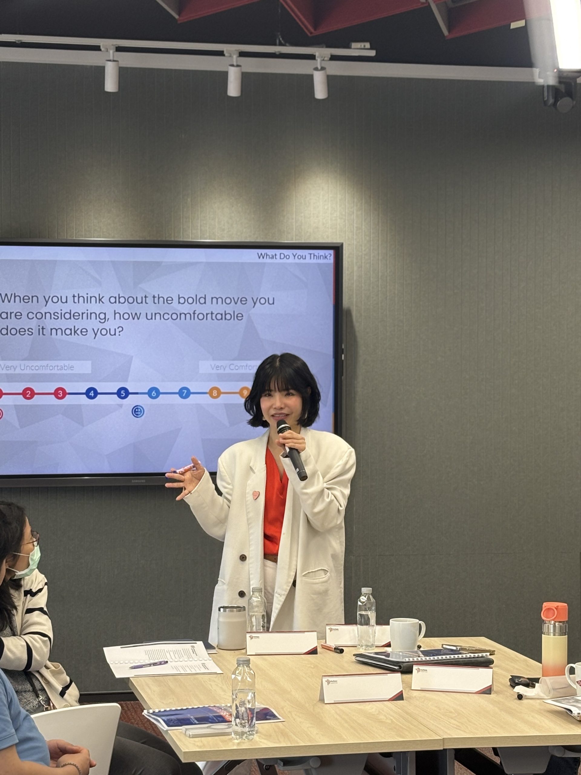 💬 หลักสูตรที่ช่วยเพิ่มพูนความกล้าหาญ ลดความกลัวในการใช้ชีวิต โดยมุ่งเน้นไปที่การจัดการความกลัวในที่ทำงานซึ่งเป็นอุปสรรคที่ทำให้องค์กรย่ำอยู่กับที่ ส่งเสริมให้คนทำงานมีความกล้าที่จะริเริ่มทดลองสิ่งใหม่ๆ ไม่ติดอยู่ในคอมฟอร์ตโซนและกล้าที่จะสื่อสารกันอย่างตรงไปตรงมาเพื่อผลประโยชน์สูงสุดขององค์กร