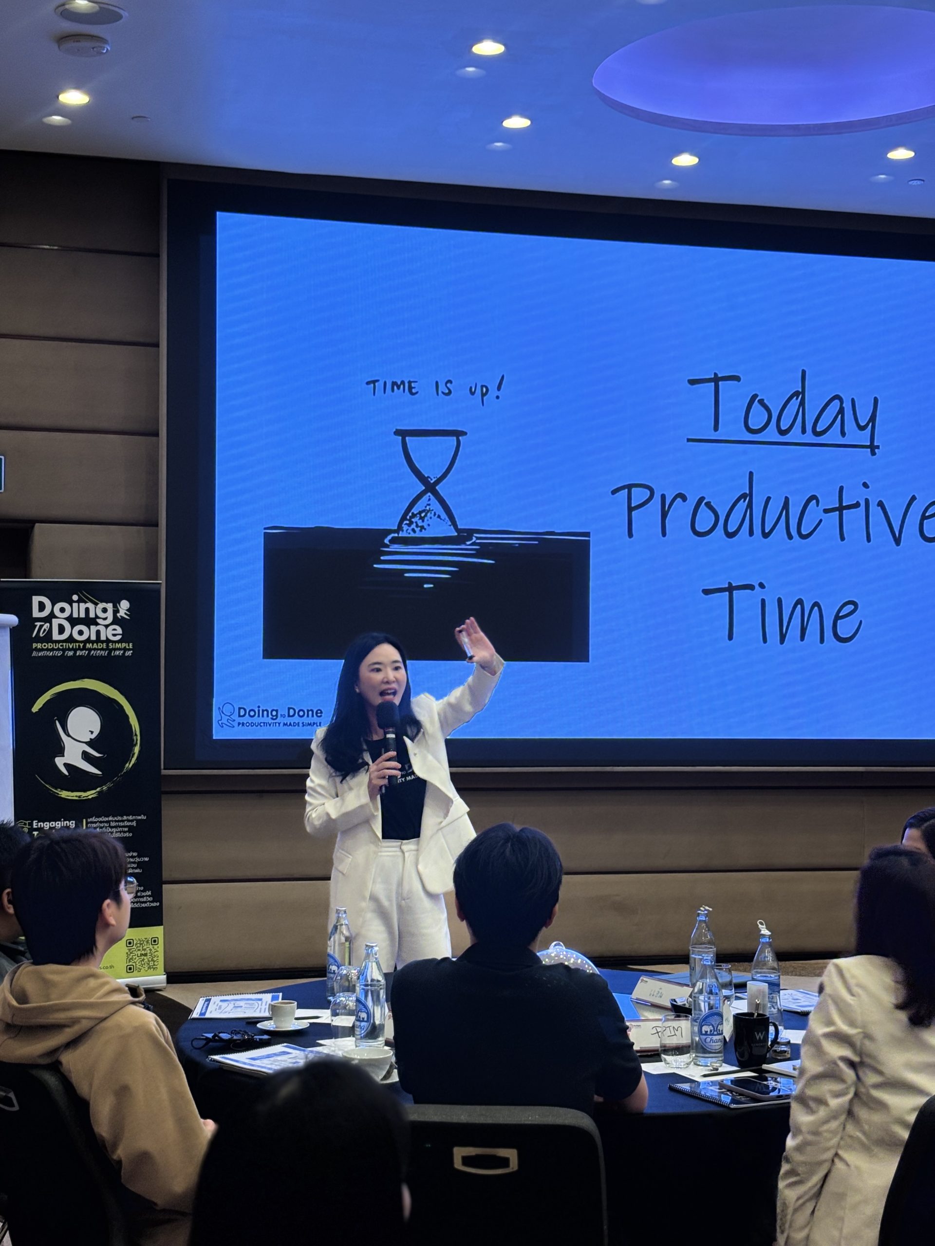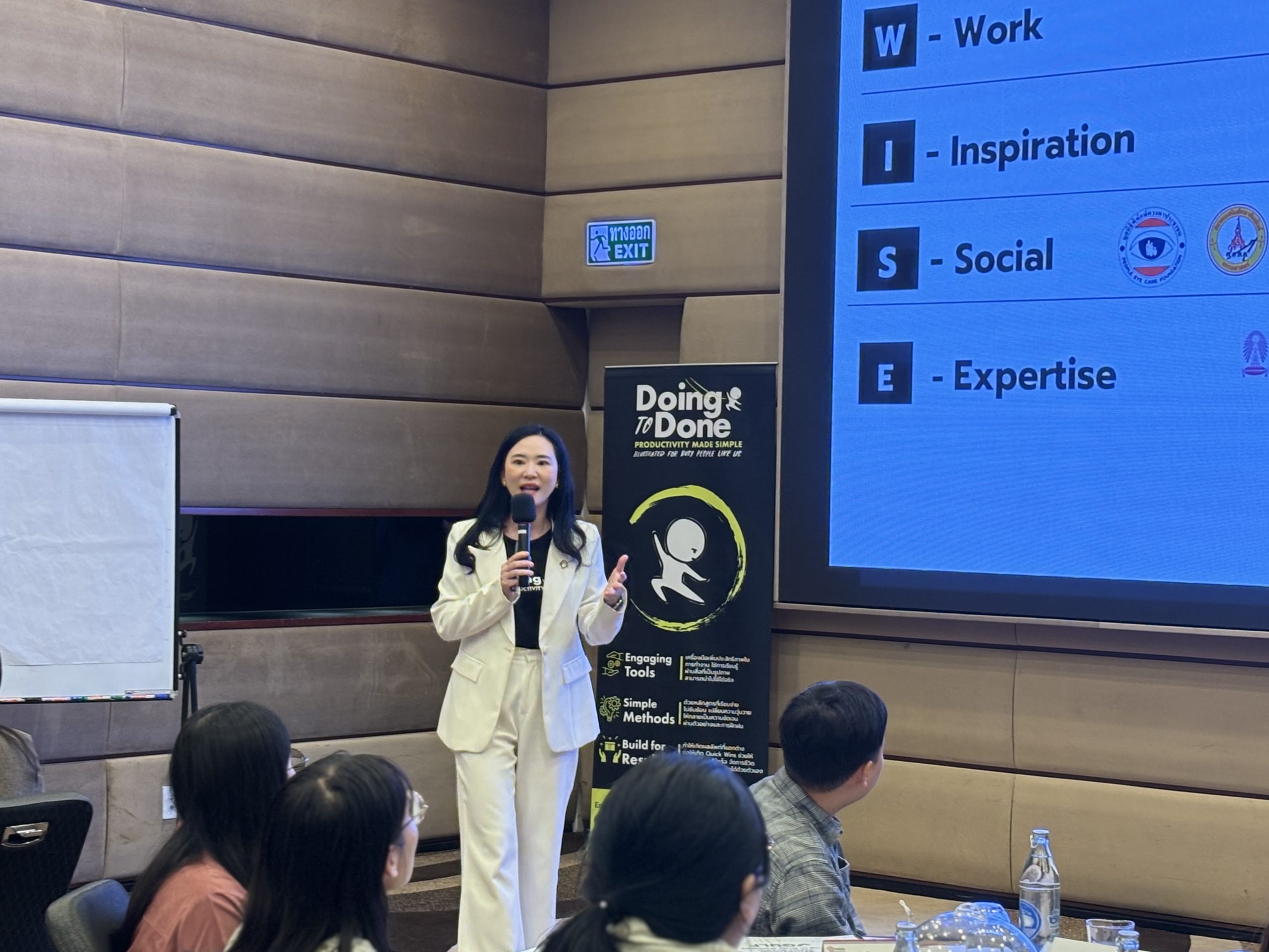 หลักสูตร DOING TO DONE วิทยากร ดร. ทรรศวรรณ ปรีดาวิภาตDOING TO DONE® คือโปรแกรมฝึกอบรมที่ออกแบบมาเพื่อช่วยให้องค์กรและบุคคลทั่วไปพัฒนาการทำงานให้มีประสิทธิภาพยิ่งขึ้น พร้อมทั้งสร้างความสำเร็จในชีวิต ด้วยวิธีคิดและเครื่องมือที่ช่วยให้เราเห็นเป้าหมายชัดเจน เข้าใจสถานการณ์รอบตัว จัดระเบียบความคิด เพิ่มสมาธิ และลดความกังวลจากงานที่ล้นมือ ผ่านการเรียนรู้ในรูปแบบที่เข้าใจง่าย ใช้สื่อภาพช่วยในการจดจำ ผู้เข้าร่วมจะได้ฝึกใช้แนวทาง Doing to Done เพื่อเปลี่ยนความยุ่งเหยิงให้เป็นความชัดเจน พร้อมลงมือสร้างระบบการจัดการทั้งเรื่องงานและชีวิตส่วนตัวอย่างเป็นระบบ เสริมแรงบันดาลใจให้เกิดผลลัพธ์ที่แตกต่าง และคว้าความสำเร็จได้อย่างรวดเร็ว